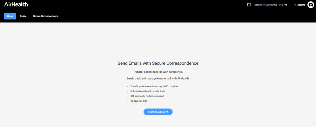 Once in, you can set up your practice profile or ignore this and choose to use secure emailing only.